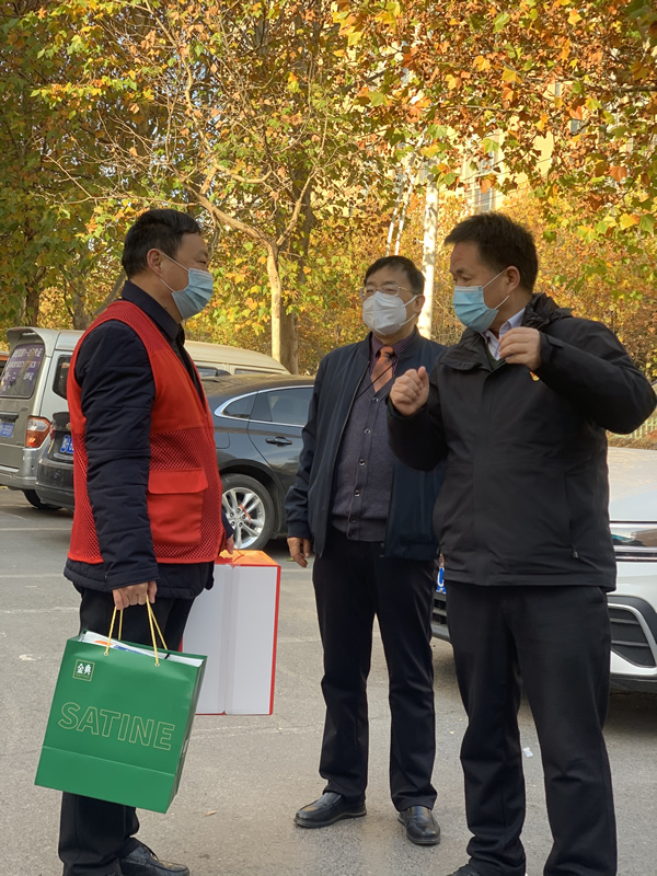 “守護(hù)家園,你們是最美的人!在守護(hù)小區(qū)居民安全的同時(shí)也要注意保重身體,作好個(gè)人防護(hù)!12月1日上午,焦作日報(bào)社黨委書記、社長王愛軍帶隊(duì),先后來到市玉河花園、逸景雅居等小區(qū)疫情防控卡點(diǎn),走訪慰問奮戰(zhàn)在疫情防控一線的焦作日報(bào)社黨員干部,并送上“暖心大禮包”。焦作日報(bào)社黨委委員、工會主席趙金瑜參加慰問活動。