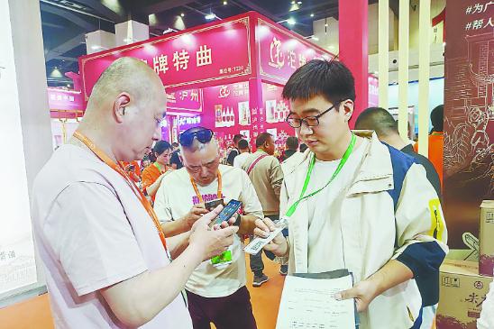 我市餐飲企業(yè)負(fù)責(zé)人在現(xiàn)場與參展商家交流。