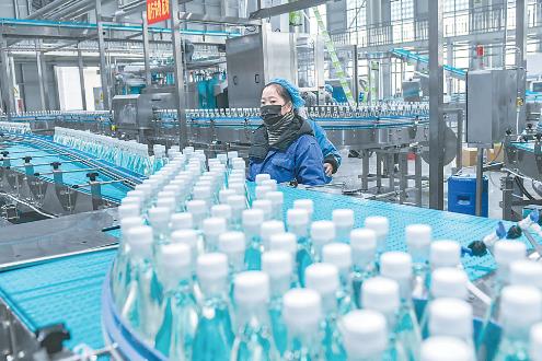 1月14日,焦作市明仁天然藥物有限責任公司工人在生產蘇打水。該公司經過多年的新品研發,目前已擁有無氣蘇打水、天然蘇打水、果味蘇打飲料等產品,年產能達100萬噸,成為國內知名的蘇打水生產企業、無氣蘇打水領軍品牌。