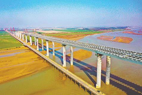 截至目前,焦平高速焦滎段黃河特大橋的樁基、系梁、立柱、蓋梁、承臺、花瓶墩、T梁預(yù)制已全部完成,T梁架設(shè)完成97.96%,橋面板預(yù)制完成1487片,橋面板安裝完成53片,混凝土護欄完成908.5米,鋼梁頂推施工左右幅累計頂推1100米;累計完成產(chǎn)值17.168億元,占總投資的90.7%。