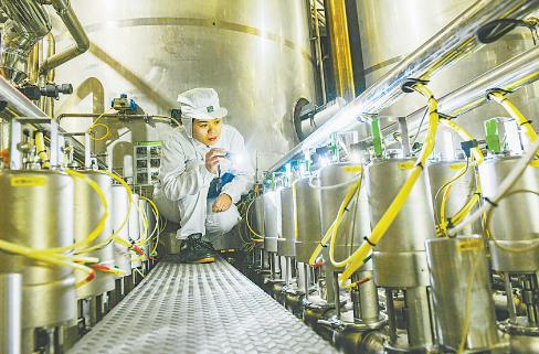 8月1日,蒙牛乳業(yè)(焦作)有限公司灌裝車間工人在巡查設(shè)備運(yùn)行情況。進(jìn)入三季度以來,該公司訂單不斷,各車間開足馬力忙生產(chǎn),把趕訂單、快生產(chǎn)作為首要任務(wù),保證市場需求,奮力沖刺三季度目標(biāo)完成,為“全年紅”奠定基礎(chǔ)。