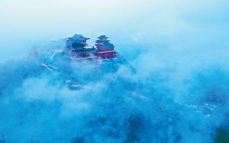 7月25日,云霧繚繞的云臺(tái)山茱萸峰山頂,古建群在薄霧中若隱若現(xiàn)。山巒間,霧氣如輕紗漫卷,紅墻黛瓦的建筑在云霧里時(shí)顯時(shí)藏。近期,受連續(xù)降水影響,云臺(tái)山出現(xiàn)了連日不絕的壯美云海景觀,吸引眾多游客前來(lái)觀賞打卡。