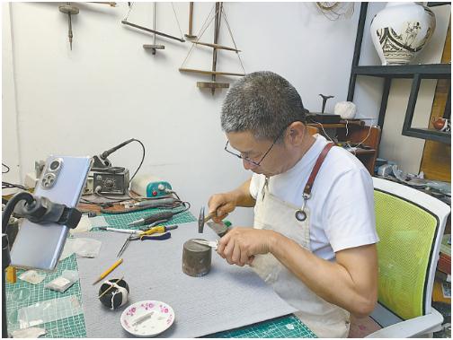 2020年,馮海全辭去穩定工作,在古玩城開了自己的工作室,專業鋦瓷。此時,他只是單純想著將家傳的手藝傳承下去,但隨著時間的積累,他的思想又發生了變化——希望更多的人看到鋦瓷這項傳統技藝。
