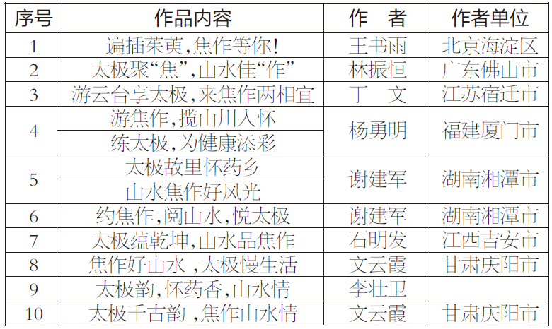 衷心感謝社會各界對本次焦作城市文旅形象“三個一”征集評選活動的熱情支持和積極參與。請獲獎者主動與焦作市文化廣電和旅游局聯系,聯系人:孫艷,電話(0391)3569599。