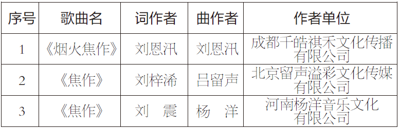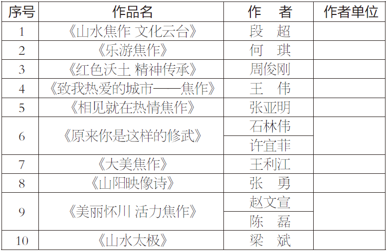 二、“一首歌唱響焦作”評選結果