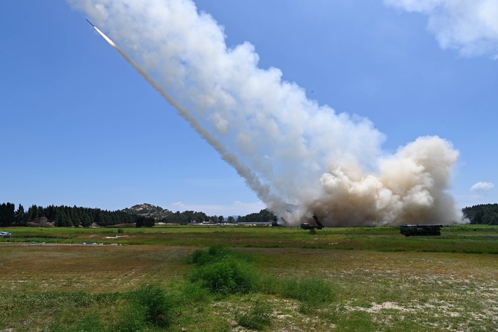 東部戰(zhàn)區(qū)陸軍某旅組織遠(yuǎn)火分隊(duì)在臺(tái)灣海峽進(jìn)行實(shí)彈射擊,完成精確打擊任務(wù)。這是發(fā)射現(xiàn)場(chǎng)(2022年8月4日攝)。新華社發(fā)(賴橋泉 攝)