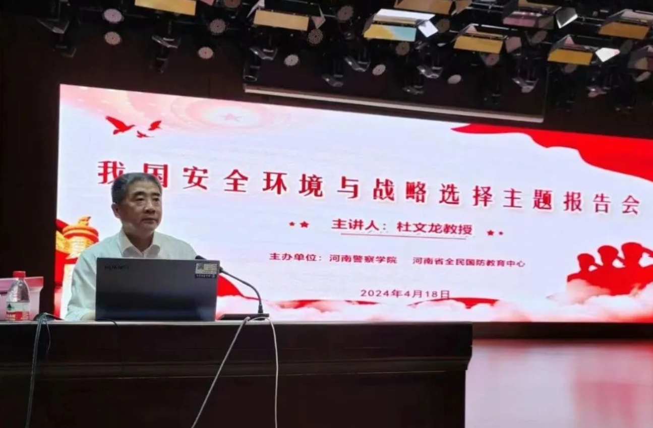 4月18日,河南省全民國防教育中心聯合河南警察學院舉辦全民國家安全宣傳教育活動,著名軍事專家、央視特約評論員杜文龍受邀做國家安全主題報告。河南省全民國防教育中心主任侯封主持報告會。