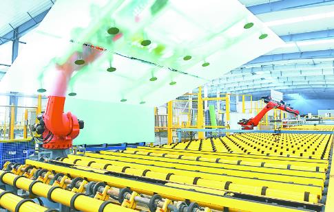 7月1日,博愛經濟技術開發區內的焦作安彩新材料有限公司自動化生產線堆垛機在加緊生產壓延太陽能光伏玻璃。該公司順應發展趨勢,實現同規模能耗最低、生產效率最高,環保排放優于超低排放標準,增強市場競爭優勢,使良品率處于同行業領先地位。