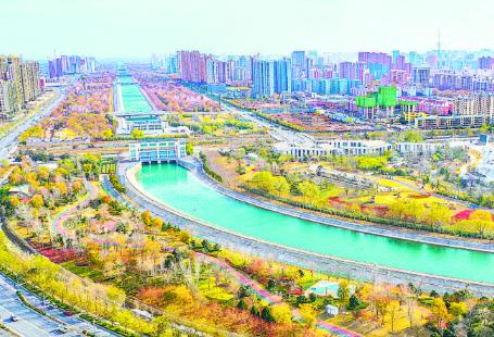 12月15日,南水北調總干渠兩岸的天河公園美景如畫,宛如夢幻的調色盤。岸邊樹木的葉子微微泛黃,格外絢爛;星星點點的紅葉似火,點燃冬日之美;河水如藍色緞帶在公園中穿過,讓公園更添靈動。
