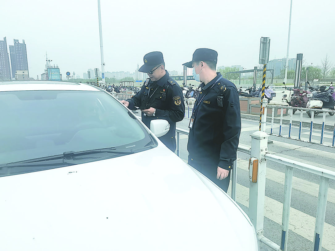 在出站口,一輛別克商務(wù)車停在路邊,幾名乘客正在有序上車。值勤人員走到車輛旁邊,詢問是不是營運車輛,得知車輛是來接親戚朋友的,便提醒司機盡快安排人員上車,及時駛離火車站,以免對交通造成影響。
