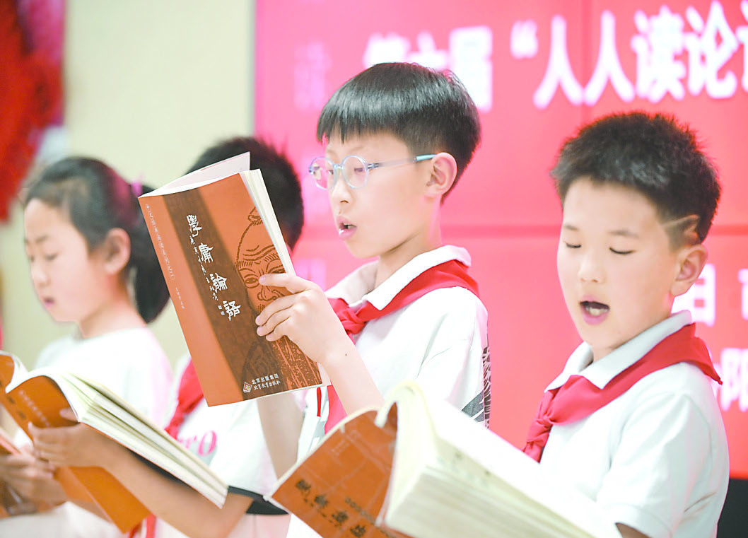 4月20日晚,同學們在誦讀《論語》。當日,由沁陽市圖書館與書香沁陽志愿者聯盟聯合舉辦的“世界讀書日,人人讀論語”主題活動,在沁陽市圖書館報告廳舉行,與會家長和孩子們在誦讀《論語》的快樂氛圍中,充分感受經典的魅力,享受到了一次文化大餐。