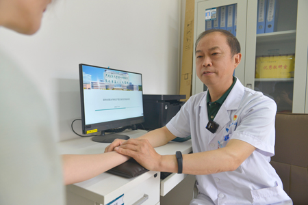 焦作市名中醫、河南理工大學第一附屬醫院中醫學教研室主任李俊成為患者把脈問診。