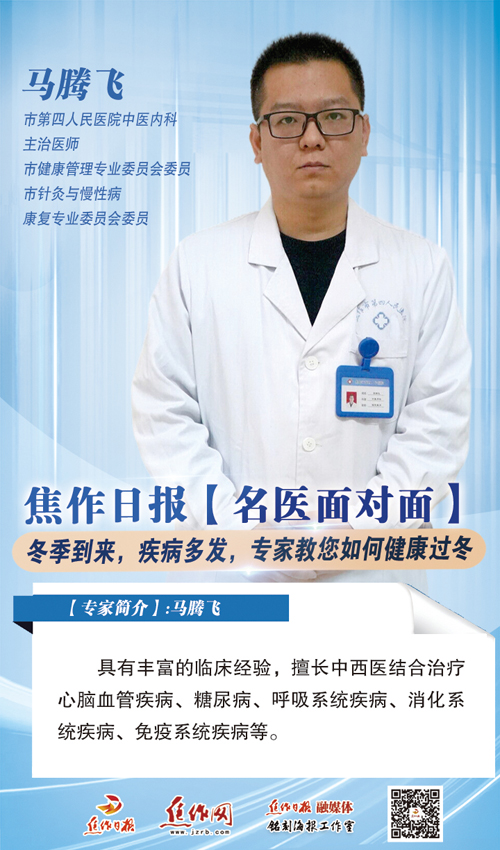 主持人:進入冬季,氣溫驟降,人體的新陳代謝和免疫功能都會受到影響,各種各樣的冬季常見病、多發病也出現了高發態勢。那么,如何提高機體抗寒能力,抵抗疾病侵襲,健康過冬呢?帶著疑問,本期節目我們走進市第四人民醫院,請該院中醫內科的馬騰飛醫生就如何健康過冬與網友們進行互動交流。