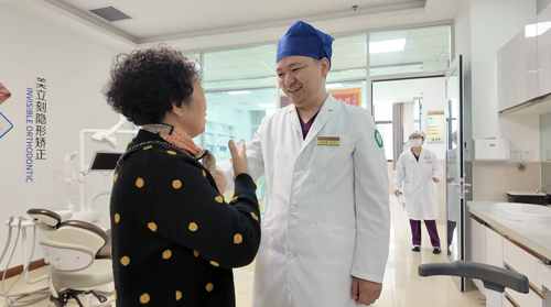 武陟縣中醫(yī)院口腔科主任李德增(右)跟患者溝通病情。