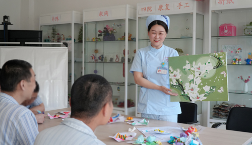市第四人民醫院精神一科護士長何雪瑩為患者做藝術治療。