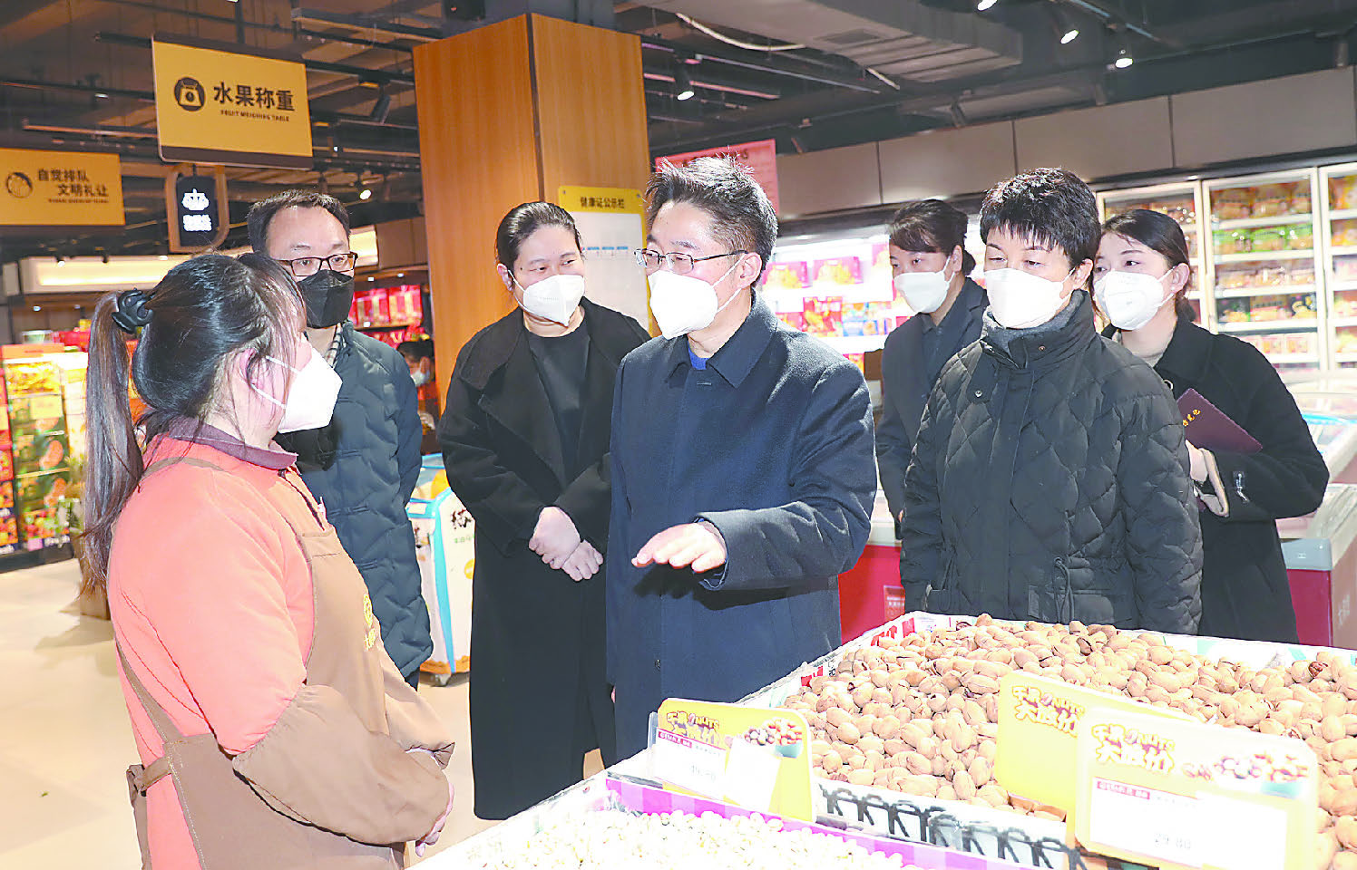 1月19日,市長李亦博在百大嘉苑生活超市檢查市場保供工作,慰問一線干部職工。