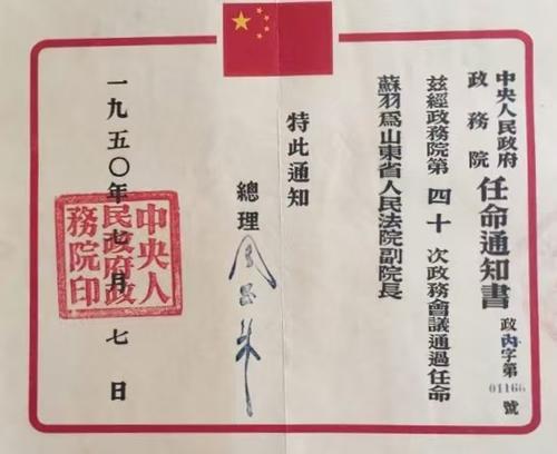 圖② 周總理簽署的任命通知書。(圖片由吉大慶提供)
