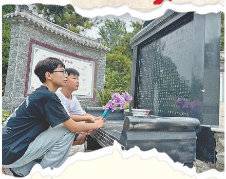 當(dāng)日上午,村里的幾名中學(xué)生來(lái)到烈士墓前,送上鮮花,深深鞠躬,致敬英烈。