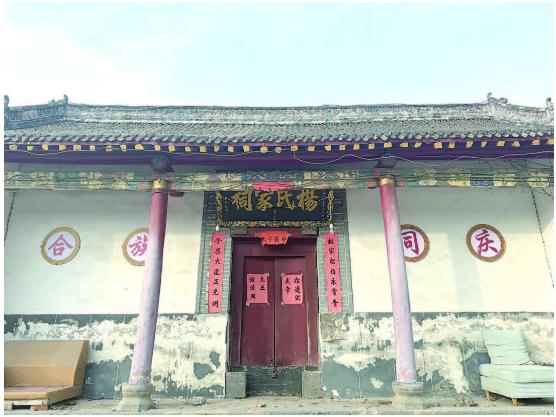 明洪武五年,楊氏族眾建祠立譜。祠址位于高村大街中段,坐北向南,與本姓塋地文昌閣成一直線,地基高于四鄰大街一米有余,選地一百平方米,建房三間。族眾逐漸繁衍、人丁興旺后,于“清咸豐三年,十一代祖諱文清、萬玉等,感春露秋爽之誠,創建宗祠,以妥先靈”,在原址擴建家祠,占地面積四百余平方米。光緒十一年,創修煖閣。光緒二十年,創建廂房,光緒三十一年,圖繪昭穆(古代宗法制度)。1990年,楊氏宗祠再次修繕,懸掛有知名書法家杜巖于1963年1月所題的“楊氏家祠”的匾額。