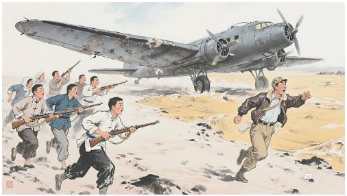 在田間勞動(dòng)的人們漸漸地看清楚了,這是國(guó)民黨的飛機(jī)。突然,有人驚呼道:“快看!看!落下來(lái)了!”隨著“轟隆”一聲巨響,飛機(jī)真的墜地了。