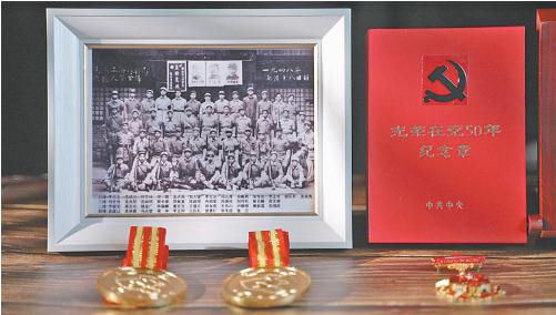 仲夏的上午,在中站區(qū)朱村街道梅苑社區(qū)張萬的家中,他的女兒張巖萍接待了我們。聽到我們的來意,她把我們領(lǐng)到了老人的臥室。室內(nèi)溫暖而寧靜,臉龐消瘦的老人靜靜地靠在床頭,那雙布滿皺紋的手正輕輕摩挲著一枚金燦燦的“光榮在黨50年”紀(jì)念章。