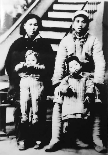 赴朝作戰前,璩懷珍與妻子以及兩個女兒合影留念。