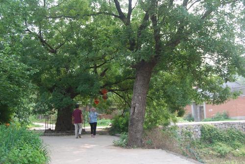 大南坡的東小莊(原名臥牛村)、西小莊(原名小北坡),各有一株國槐。南坡趙氏宗祠碑刻記載,它們是明洪武4年,趙五佬偕侄子趙玘從山西省洪洞縣遷居這里之后,叔侄二人分別所植,胸圍都是4米多,距今已經650多年。東小莊國槐的樹根地下延伸6米之后又生出的一株國槐,樹齡已有百年,胸圍1.8米,形成罕見的子母槐。母子相依,意味深長,林業專家說,這是焦作地區獨一無二的景觀。前幾年,老槐樹一度出現了衰老之狀,在古槐周圍住戶的精心呵護下,近幾年又煥發了生機。曾有行人從樹下走過,樹上飛出的錦雞讓她又驚又喜。趙秀梅老師講的故事更有趣:那年夏季,她親眼目睹十幾只松鼠從小槐樹上先后下到地面,然后不約而同地爬上老槐樹,在一股橫向的樹干上等距離排列,并且頭部一致朝相同的方向,似乎遵循著教練的口令,看來小精靈們也是挺守規矩的。未能拍下這個瞬間,成為趙老師心中的一樁憾事。