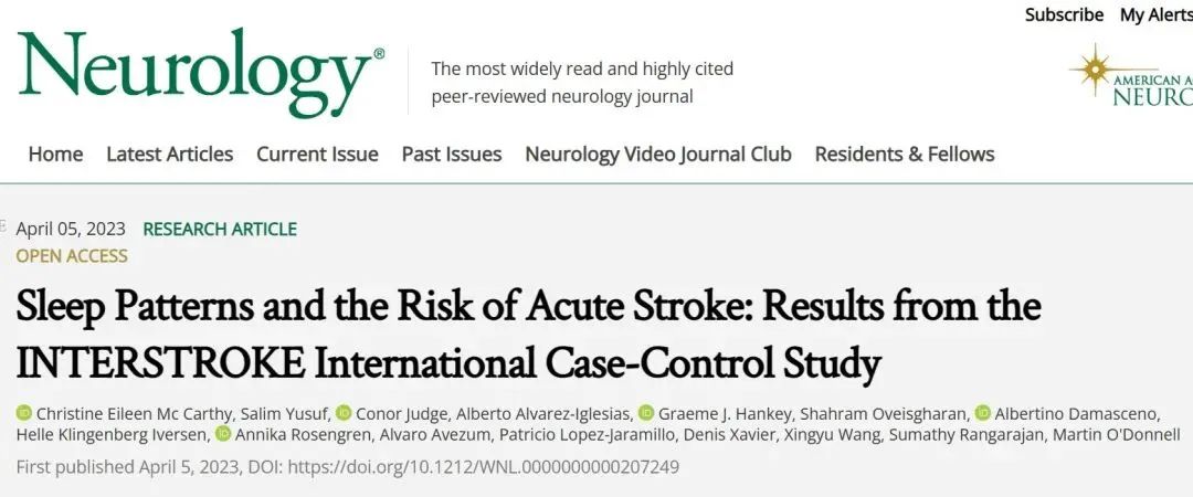 2023年4月,《神經病學》期刊上最新發表的一項研究提示,多種睡眠障礙模式或會增加中風風險。其中,睡眠不足(<5小時)、睡眠呼吸暫停綜合征、睡眠時間過長(>9小時)排前三,這三大睡眠障礙癥狀會導致中風風險大幅上升,分別升高215%、187%和167%。