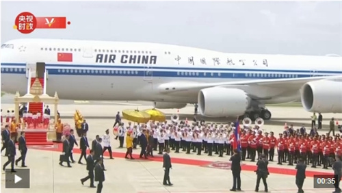 習近平抵達柬埔寨金邊國際機場發表書面講話