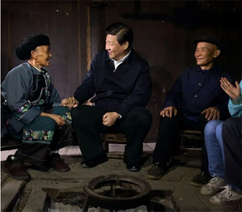 2013年11月3日,習(xí)近平在湖南湘西土家族苗族自治州花垣縣排碧鄉(xiāng)十八洞村同村民石拔三一家人促膝交談。新華社記者 蘭紅光 攝