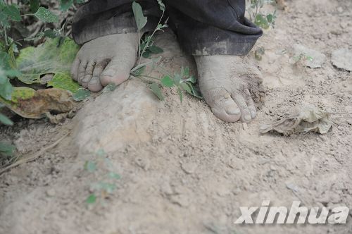 7月5日,在河南滎陽黃河灘區,一名被圍困農民上岸后在地頭等待。