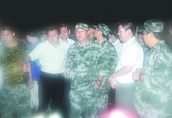 昨日18時(shí)30分左右,大雨突襲我市,烈士街道清小學(xué)西50米路南的路面發(fā)生塌陷,出現(xiàn)一個(gè)直徑約3米、深3米左右的大坑,給居民出行帶來了不便。得知情況后,焦作軍分區(qū)司令員闞輝(前排中)、參謀長董建亞立即組織解放區(qū)負(fù)責(zé)人以及民兵參加搶險(xiǎn),并冒雨到現(xiàn)場指揮。 李英俊 楊 銘 攝