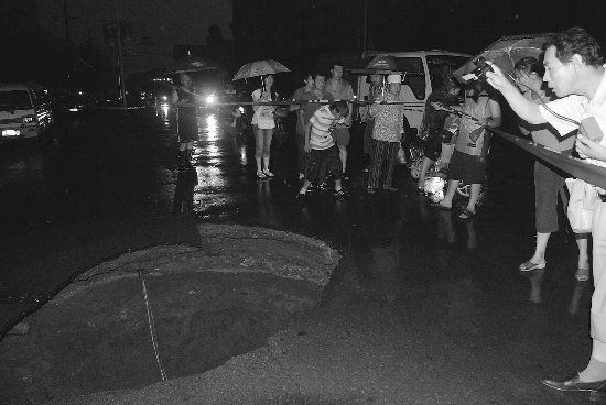 本報(bào)訊 (記者賀君) 昨日傍晚,突如其來的一場大雨給市民帶來了一絲清涼,也帶來了不少麻煩,在烈士街道清學(xué)校西側(cè),雨后的路面上突然塌陷一個(gè)大坑,幸未造成人員傷亡。相關(guān)單位接報(bào)后及時(shí)趕到現(xiàn)場,對(duì)大坑進(jìn)行了隔離處理。