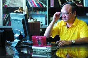 2008年7月,時任湖南株洲市紀委書記的楊平向媒體記者演示他平日上網的過程。他因網絡反腐而聞名,并稱確實有官員害怕網絡監督。圖/CFP