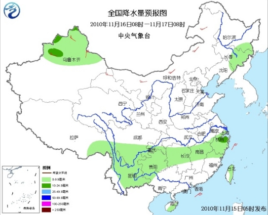 16日08時至17日08時,新疆北部、西藏東南部、川西高原中南部、吉林東部、黑龍江東南部等地有小到中雪(雨)或雨夾雪,其中,新疆北部的局部地區有大雪;江南中北部、四川南部、重慶南部、貴州大部、云南大部、海南東南部以及臺灣大部等地有小到中雨或陣雨。新疆北部、內蒙古大部等地有4~6級風,新疆山口地區風力可達7~8級。臺灣海峽、臺灣以東洋面和以南海域、南海東北部海域將有7~8級、陣風9級的東北風;南海西北部和中部海域將有5~7級東北風。東海南部海域將有5~6級東北風。