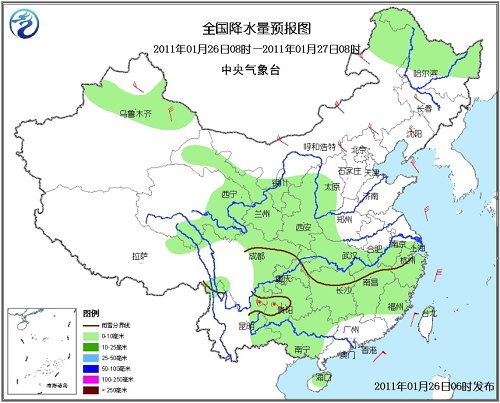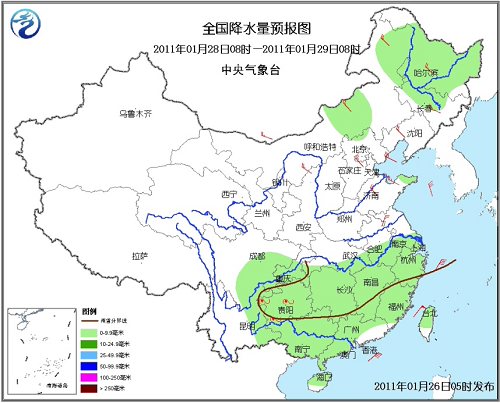具體預(yù)報(bào)如下: 26日08時(shí)至27日08時(shí),青藏高原東北部、新疆北部、內(nèi)蒙古東北部、黑龍江中北部、西北地區(qū)中東部、西南地區(qū)東部、山西中西部、江漢大部、江南、廣西大部、福建大部及海南等地有小到中雪(雨)或雨夾雪,其中,西北地區(qū)東南部的局地有大雪,貴州中西部、云南東北部的局地有凍雨;臺(tái)灣海峽、南海風(fēng)力將達(dá)有7~8級(jí)、陣風(fēng)9~10級(jí)。