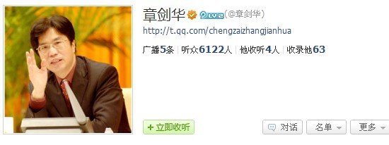 要說目前江蘇人氣最旺的官員微博,恐怕非章劍華的微博“章劍華博客”莫屬。他也是榜單前十中唯一的江蘇官員。章劍華的微博只有8個關注,358條微博,但粉絲目前已達39萬多。