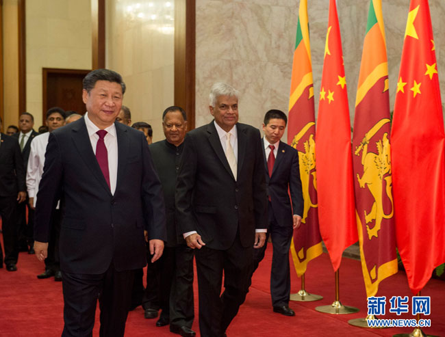 習近平會見斯里蘭卡總理維克勒馬辛哈