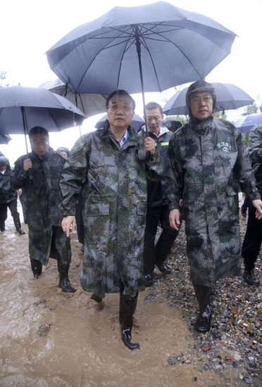 此前一天,李克強剛剛從安徽、湖南汛區急赴湖北武漢,冒著大雨趕往青山區長江干堤倒口湖堤段管涌搶險現場察看。