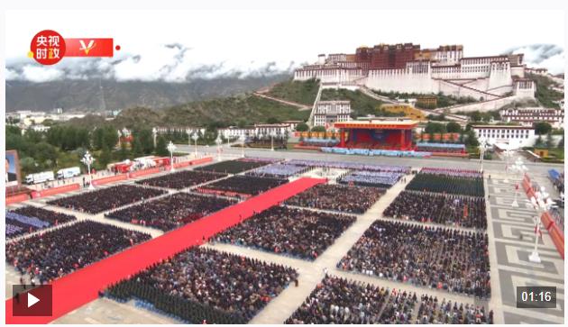 21日上午,習近平總書記在拉薩市布達拉宮廣場出席西藏自治區成立60周年慶祝大會,同西藏各族各界干部群眾約2萬人共同歡聚,熱烈慶祝西藏自治區成立60周年。