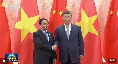 8月31日下午,國家主席習近平在天津迎賓館會見來華出席2025年上海合作組織峰會的越南總理范明政。
