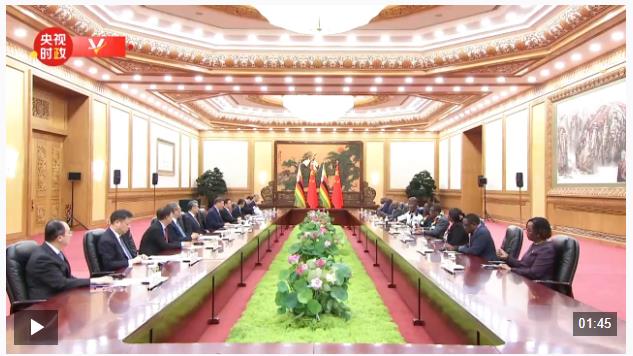 9月4日上午,國家主席習近平在北京人民大會堂會見來華出席紀念中國人民抗日戰爭暨世界反法西斯戰爭勝利80周年活動的津巴布韋總統姆南加古瓦。兩國元首宣布將雙邊關系提升為中津全天候命運共同體。