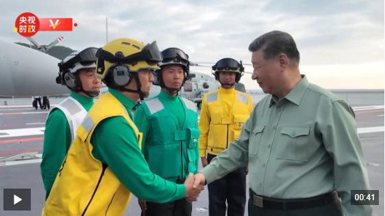 我國第一艘電磁彈射型航空母艦福建艦入列授旗儀式5日在海南三亞某軍港舉行。中共中央總書記、國家主席、中央軍委主席習近平出席入列授旗儀式并登艦視察。
