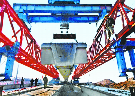 10時02分,隨著市委書記路國賢宣布迎賓路改造工程大沙河橋合龍,橋面上,巨大的龍門架將最后一塊重達95噸的箱梁緩緩放在蓋梁上。這標志著我市2008年重點工程迎賓路改造項目圓滿完成了年度建設(shè)任務(wù)。路國賢以及市委常委、常務(wù)副市長趙海燕同數(shù)百名嘉賓、工程建設(shè)者見證了這一激動人心的時刻。