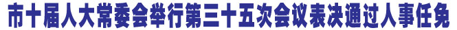 本報訊(記者杜玲)昨日上午,市十屆人大常委會舉行第三十五次會議,表決通過了有關(guān)人事任免事項(xiàng)。市人大常委會主任郭國明主持會議,市人大常委會副主任張建設(shè)、白富海、宮素清、苗紹勇、孔相如、張動天及秘書長鄭慎軒出席會議。常務(wù)副市長趙海燕列席會議。