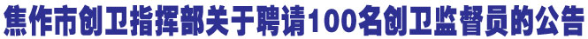 為充分發揮輿論監督作用和廣大市民的創衛主體作用,進一步提升我市創衛工作的整體水平,市創衛指揮部決定聘請100名創衛監督員。現公告如下: