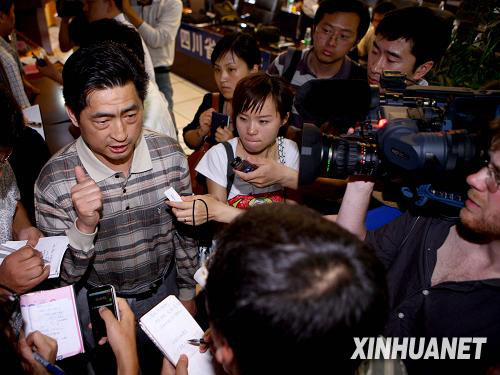 5月11日,四川省衛生廳在四川省衛生廳省突發公共衛生事件應急指揮中心舉行新聞通報會,介紹在四川發現的我國內地首例甲型H1N1流感病例有關情況和四川省采取的有關應對措施。這是四川疾病預防控制中心急傳所所長祝小平(左)在通報會后接受記者采訪。新華社記者 陳建力 攝