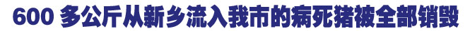 本報訊 (記者王愛紅) “真缺德,逮到這些人應該狠狠地處罰!”昨日上午,市商務稽查支隊在市東方紅廣場舉行宣傳活動,當過往市民看到稽查隊員查獲的22頭病死豬時,都氣憤地譴責不法肉販的坑人行為。