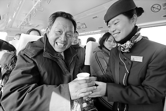 乘焦鄭公交返鄭的焦作籍大學生小馬有點感冒,乘務員楊少彩馬上遞過去一杯水。小馬笑著說:“沒想到坐長途車也能享受到如此溫馨的服務,希望你們‘陸地航空’的服務能堅持下去。”