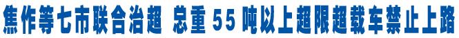 新華社鄭州4月28日電 (記者王云河) 面對超載貨車壓垮鄭州公路橋等惡性超載事件的發生,從5月11日起,河南省的鄭州、開封、洛陽、許昌、新鄉、焦作、平頂山7市將聯合舉行治超行動,全面禁止車貨總重超過55噸的超限超載車輛上路過橋行駛。對非法改裝的貨運車輛,將全部強制拆解,恢復原貌。